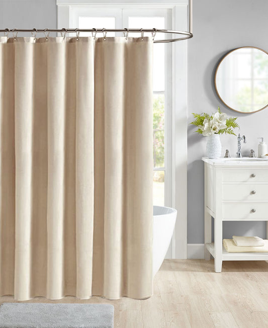 Faux Linen Shower Curtain With Stainless-Steel Hooks, 210 GSM, 72 x 72 in