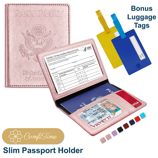 Slim Passport Holder With Bonus Luggage Tags, 2 Pack