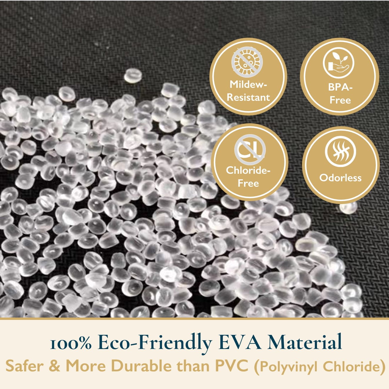 - Non-Toxic and Eco-Friendly - Made with 100% high quality and eco-friendly EVA material. EVA (Ethylene-vinyl acetate) is considered eco-friendly because it is BPA-free and does not contain chlorides, heavy metals, phenols, latex, and other toxic substances. It is a safer alternative to shower liners that use PVC which often carry BPA. ComfiTime EVA shower liner is certainly the better choice for you and your family.