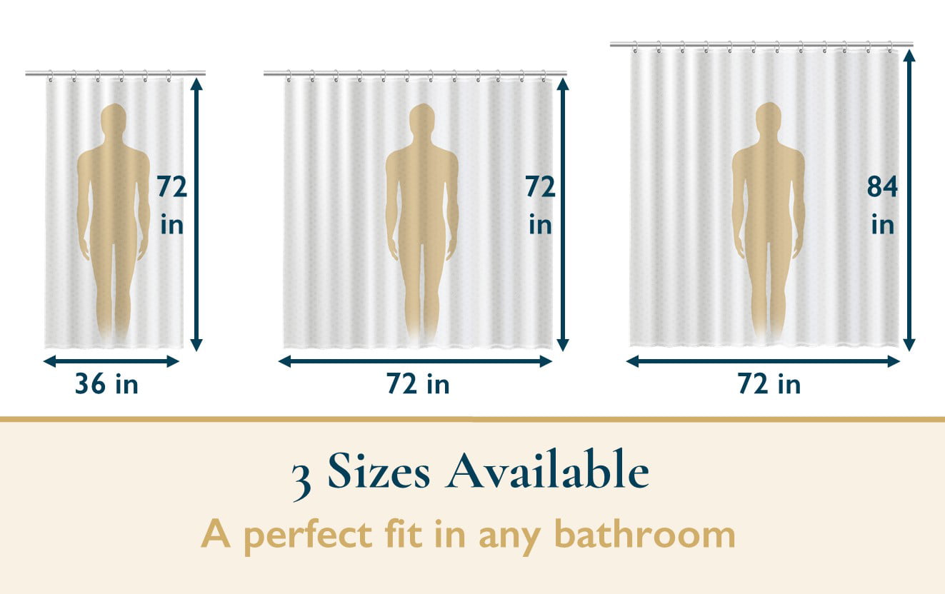 - Convenient and Durable - Measuring 72" x 72", the ComfiTime shower liner fits any standard size shower or tub, whether you have a straight or curved shower rod! It also features 12 rust-proof metal grommets and a reinforced header that prevents tearing and ensures long-term functionality.