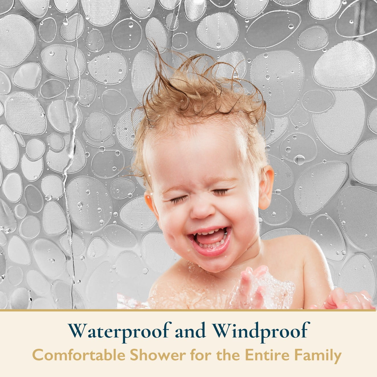 - Mildew-Resistant and Waterproof - Our shower liner is not only made of waterproof material but also weighted with three magnets at the bottom, which keeps the shower liner in place and away from your body. So, you can treat yourself to a long relaxing bath or shower!
