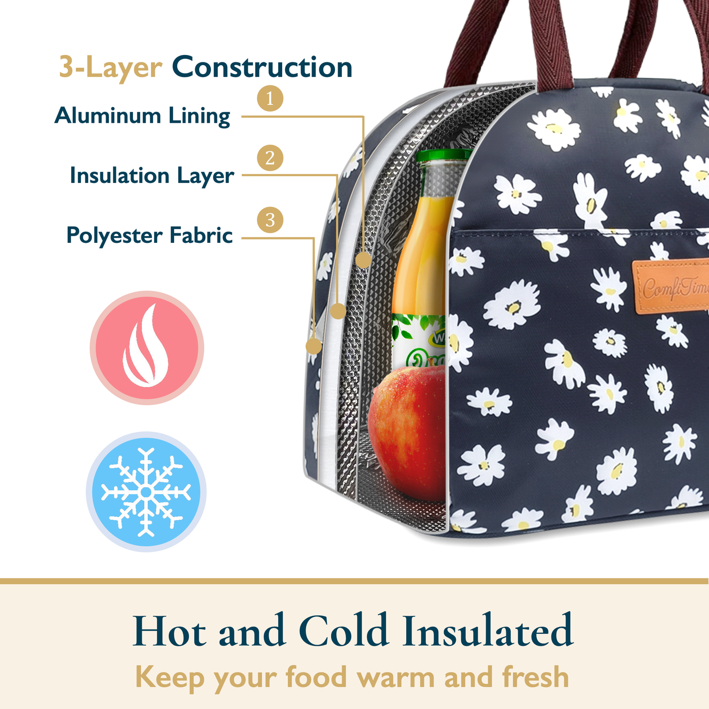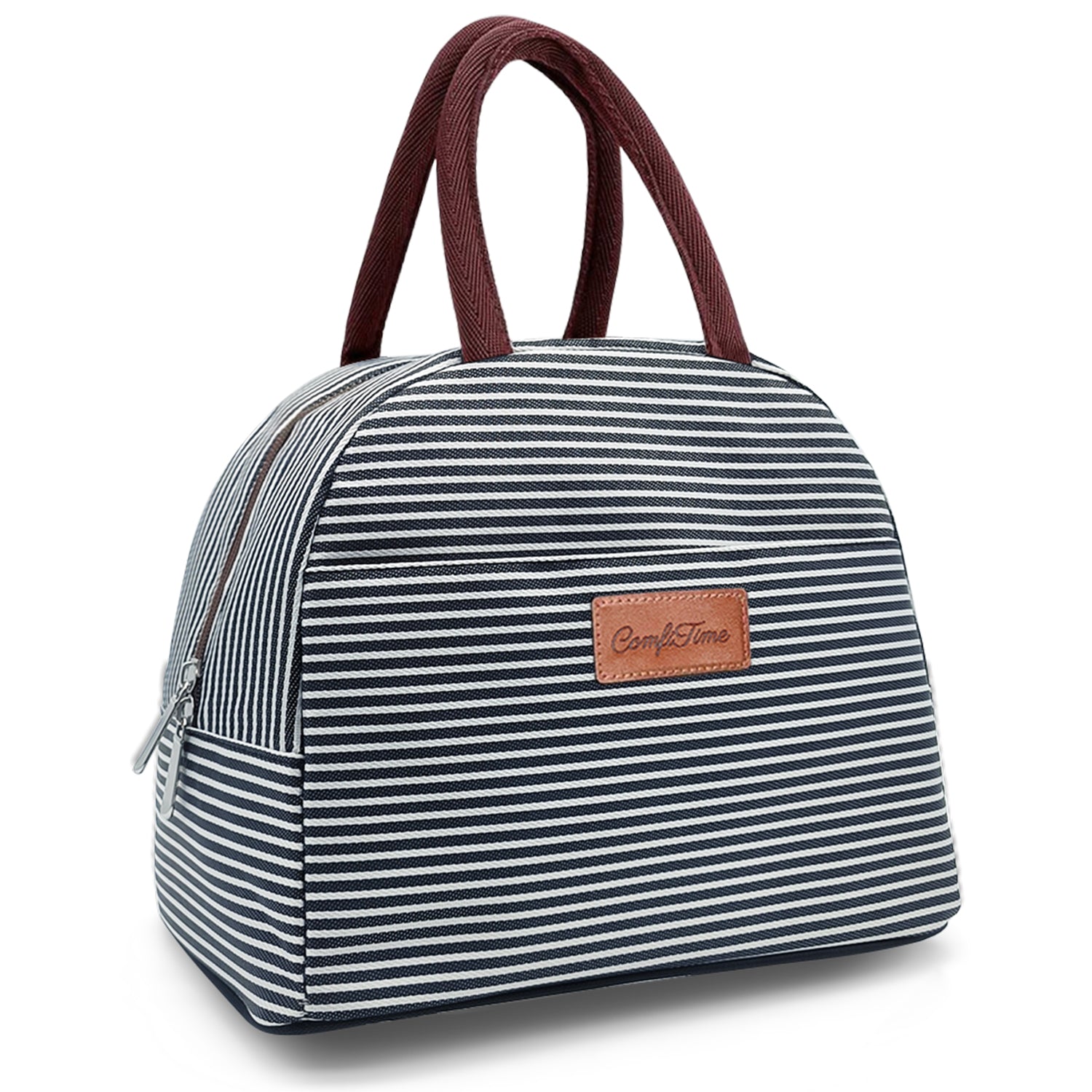 8L Large Capacity - Measured at 10.8 x 7.5 x 9 in, our ComfiTime lunch bag has a roomy 8.6 L capacity that translates to 14 cans of volume. It has 35% greater capacity than similar tote lunch bags. You can easily fit in a full lunch, snacks, and other items you need on the go.